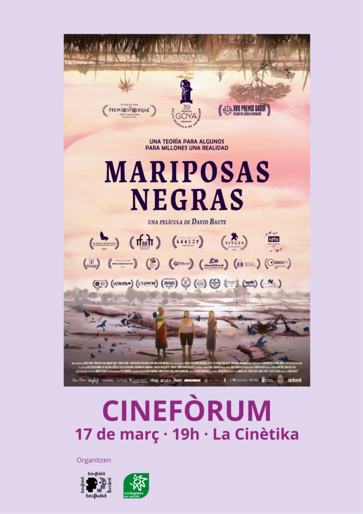 Des d’Entrepobles i Ecologistes en Acció us convidem a la projecció de “Papallones Negres” del director David Baute.