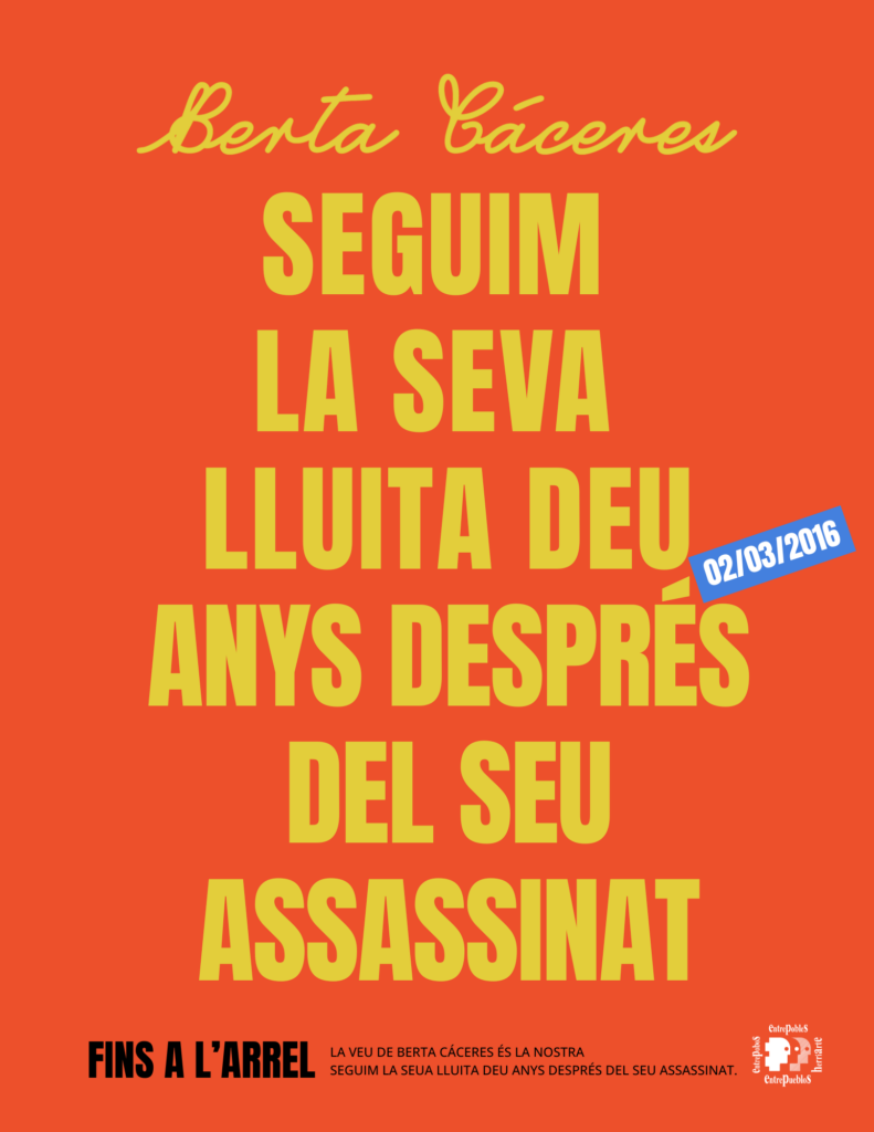 En el marc del desè aniversari de l’assassinat de Berta Cáceres, reconeguda lideressa indígena lenca, defensora de drets humans i cofundadora del Consejo Cívico de Organizaciones Populares e Indígenas de Honduras (COPINH), des d’Entrepobles impulsem la campanya de comunicació “Fins a l’arrel”.
