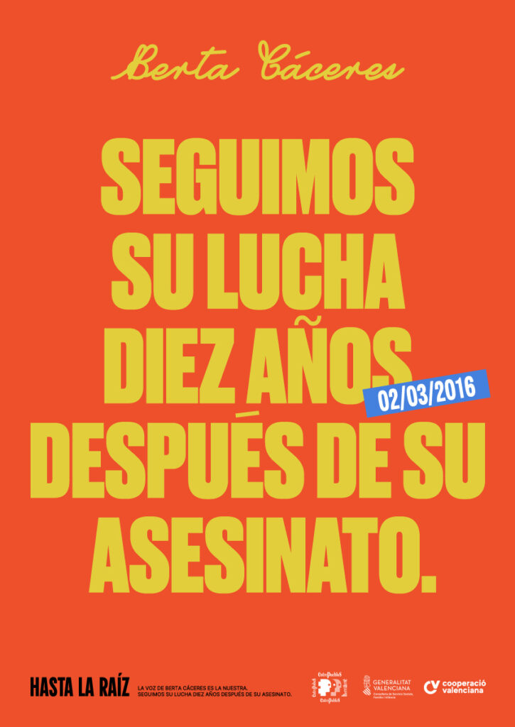 Bajo el claim “Hasta la raíz”, la campaña comienza con la historia de Berta y se extiende para visibilizar otros cuatro casos emblemáticos de luchas sociales amenazadas por el extractivismo, los desastres medioambientales, la criminalización y la violencia contra defensoras. Su objetivo es exigir responsabilidad judicial y política y romper los ciclos de impunidad que atraviesan estas luchas. Cada uno añadirá una capa a la misma pregunta: quién asume las responsabilidades, cómo cuidamos lo común, qué hacemos hoy con la semilla que dejaron quienes pagaron con su vida el atrevimiento de defender el agua, la tierra y los cuerpos.