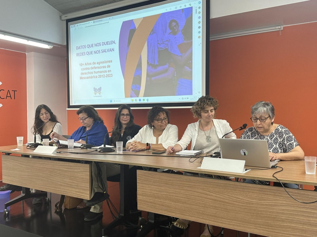 El informe se presentó en el mes de junio en el estado español, en concreto en Basauri (Euskadi), Barcelona, Madrid y Petrer (Alicante). En estas tres últimas ciudades, IM-Defensoras contó con el apoyo de Entrepueblos y, en Barcelona, de la recién constituida Taula pels Drets Humans i la Pau a l’América Central. En las presentaciones, participaron activistas que forman parte de las redes de defensoras de El Salvador y Honduras, como la salvadoreña Morena Herrera o la activista garífuna Yéssica Trinidad, junto a la defensora de crímenes en la Frontera Sur Helena Maleno, colectivo Iridia y las activistas de Entrepueblos Virginia Francisco, Montse Benito y Conxa Martínez. Uno de los ejes fundamentales del trabajo de Entrepueblos es el acompañamiento de defensoras de DDHH y el territorio, tanto a través de la incidencia política y social, como de la cooperación y la educación transformadorra.
