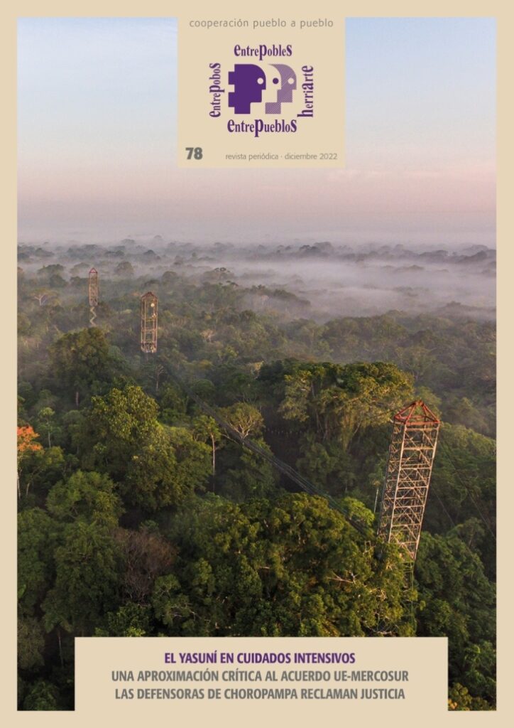 Desde Entrepueblos os traemos la nueva revista número 78 donde la activista Esperanza Martínez escribe acerca de la consulta del Yasuní, reserva de la biosfera amenazada por el mayor proyecto de explotación petrolera de Ecuador. Además, hablamos sobre derechos humanos en El Salvador, entrevistamos a las activistas de Mujeres de Frente e incluimos un reportaje sobre las