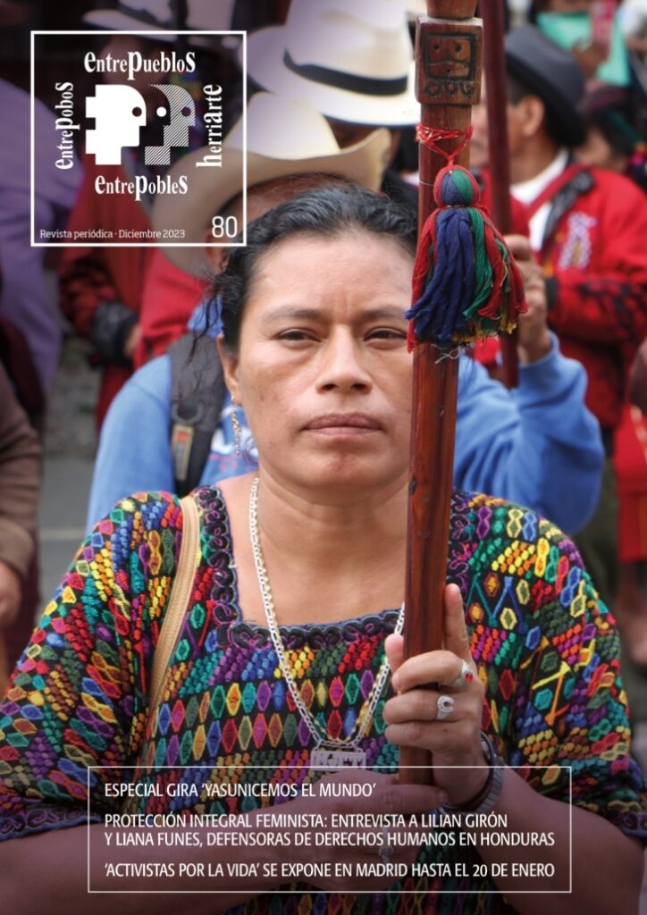 Desde Entrepueblos os traemos la nueva revista número 80 donde analizamos la situación política y social de Guatemala e incluimos un especial ‘Yasunicemos el Mundo’: artículos, entrevistas y reflexiones tras el encuentro de tres de los protagonistas de la campaña de defensa del Yasuní ecuatoriano con entidades y organizaciones que defienden la transición ecosocial en el estado español. Además, hablamos con Lilian Girón y Liana Funes, que forman parte de la Iniciativa Mesoamericana de Mujeres Defensoras de Derechos Humanos (IMD) y la Red Nacional de Defensoras de Derechos Humanos en Honduras.
