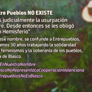 Dado que sabemos que su medio de comunicación, y en especial su persona, dan seguimiento al también llamado “Caso Blasco”, agradeceríamos que tengan en cuenta esta circunstancia a la hora de informar en la ciudadanía, y no generar confusión en relación al uso del nombre de nuestra Asociación Entrepueblos, ya que, como dictaba la propia sentencia, la denominación Entre Pueblos no es suficientemente distinta y puede inducir a confusión entre ambas entidades. Por ello, sugeriríamos que puedan utilizar el nombre de la Fundación Hemisferio, o en todo caso, aclarar que la auténtica Asociación Entrepueblos (o Entrepobles), no sólo no tiene nada que ver con este caso, si no que obligó a dicha fundación a renunciar a esta denominación que habían usurpado, vía fallo judicial (sentencia firme del Juzgado Mercantil nº 2 de Valencia, de 28/10/10).
