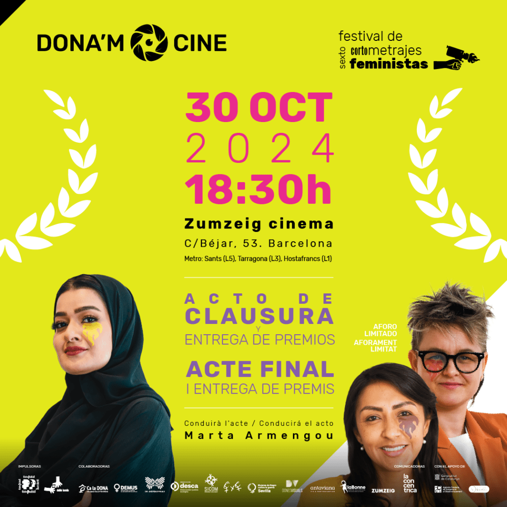 El 30 de octubre, la VI edición de Dona’m Cine llegará a su momento culminante con una ceremonia que promete ser una velada memorable al Cine Zumzeig de Barcelona. Este festival, que ya se ha consolidado como una plataforma de referencia para el cine feminista, ha dado voz a historias de mujeres de todo el mundo y ha celebrado la diversidad de miradas feministas a través del audiovisual.
