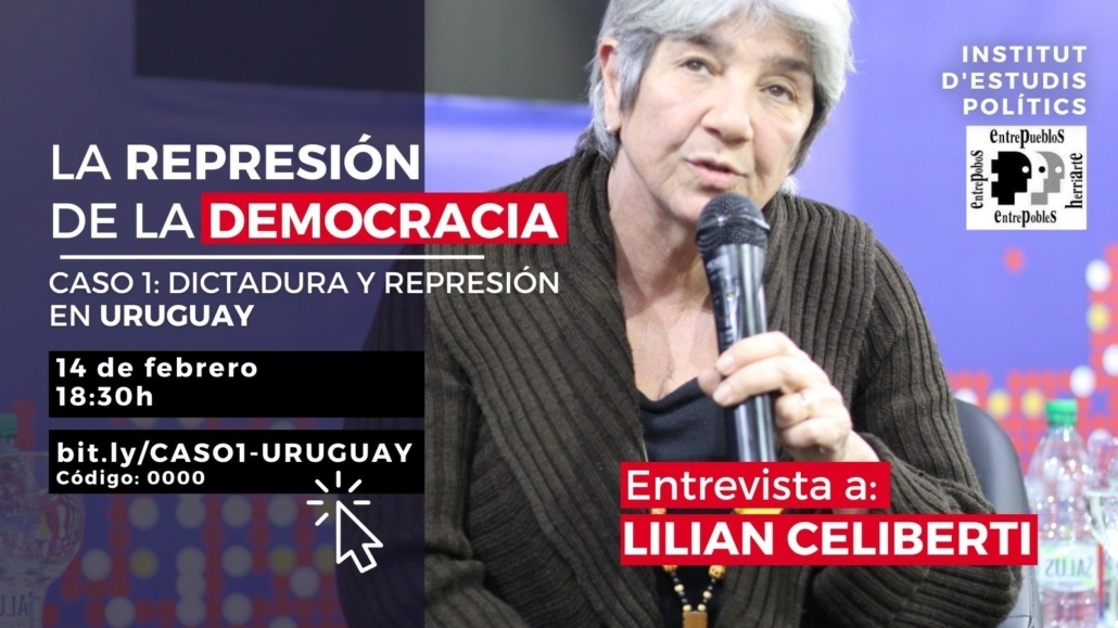 Recupera en este vídeo el diálogo sobre la represión y la dictadura en Uruguay con la escritora feminista Lilian Celiberti, organizado por la Fundación Institut d’Estudis Politics (FIEP) y la asociación Entrepueblos en el mes de febrero de 2023. El encuentro forma parte del Ciclo de Memoria Histórica que organiza el FIEP para conocer y comprender las características comunes o diferenciales de la represión sufrida por los movimientos democráticos y emancipadores a lo largo del siglo XX.